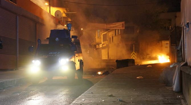 Maskeli şahıslar polise de taşla saldırdı. Kurdukları barikatları ateşe veren gruba polis biber gazı ile müdahale etti. Polisin müdahalesi ara sokaklarda uzun süre devam etti. Polis ekiplerinin bölgedeki güvenlik önlemi sürüyor. CİHAN
