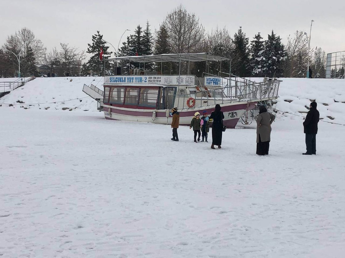 Konya'da 22 Ocakta başlayan ve aralıklarla devam eden kar yağışıyla hava sıcaklığının 26 dereceye düşmesi nedeniyle gölün büyük bir bölümü buz tuttu.