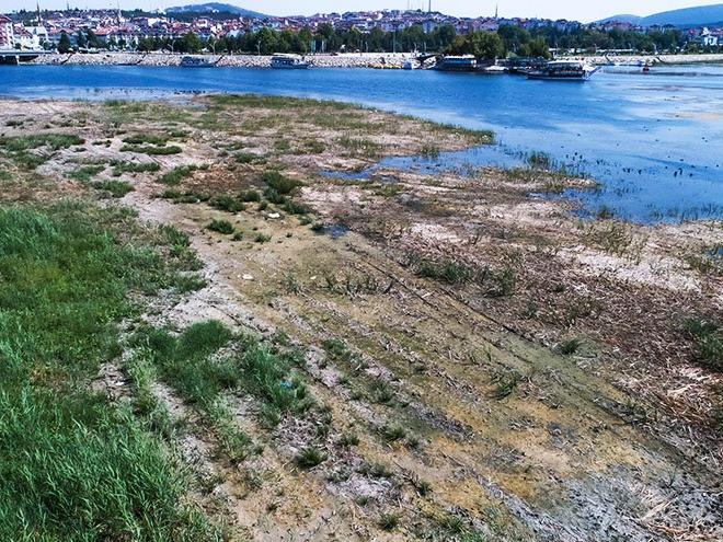 Ancak iklim değişikliği ve bilinçsiz tarımsal sulama nedeniyle göldeki su, kıyıdan 150 metre çekildi.