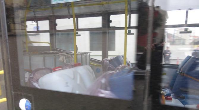 BİDONLAR AĞIRLIK YAPMASI İÇİN SUYLA DOLDURULUP OTOBÜS TEST SÜRÜŞÜNE ÇIKMIŞ