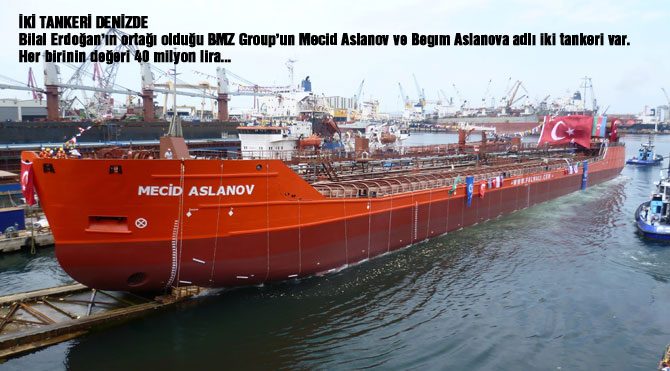 Amca, yeğen, enişte olarak 2013 yılında deniz taşımacılığı işine giren Erdoğan’lar, büyümeye devam ediyor. Aralık ayında Bilal Erdoğan’ın amcası ve eniştesi ile ortak olduğu BMZ Group Denizcilik Şirketi’nin mülkiyetinde bulunan 7 bin 150 DWT taşıma kapasitesine sahip M/T Mecid Aslanov isimli ham petrol ve ürün taşıyıcı nehir tankeri 10 yıllığına Palmali Denizcilik’e kiralandı. Şirketin, ikinci tankeri M/T Begım Aslanova isimli tanker, Yardımcı Tersanesi’nde yapıldı. Bu, 10 tankerlik setin ikinci gemisiydi. Bilal Erdoğan, 5 tankeri almaktan vazgeçmişti. Şimdi 3 gemi kaldı. Her biri 40 milyon lira olan tankerlere, toplamda 200 milyon lira ödenecek. Bilal’in ağabeyi Burak da yıllar önce gemicikle girdiği denizcilik sektöründe hızla yükselmiş, 5 gemisi olmuştu.