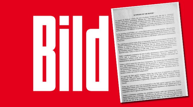 Avrupa Birliği’nin, göç şantajı nedeniyle ertelediği Türkiye raporunu Alman Bild Gazetesi ele geçirdi. 21 sayfalık ingilizce rapor, Türkiye’deki son yıllarda kötüye gidişin bir analizini yapıyor.