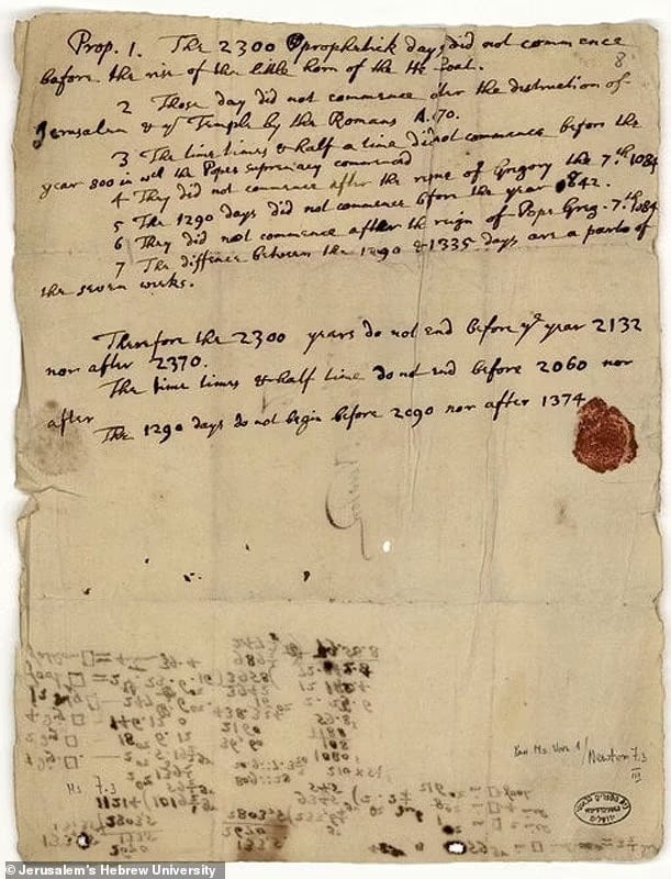 Newton'ın 1704 tarihli mektubunda şu ifadeler yer alıyordu: "1260 gün, 42 ay veya üç buçuk yıla eşittir. Eğer bu süre, M.S. 800 yılındaki üç kralın fethiyle başlatılırsa, M.S. 2060'ta sona erer. Daha geç olabilir, ancak daha erken olmasına dair bir neden göremiyorum."