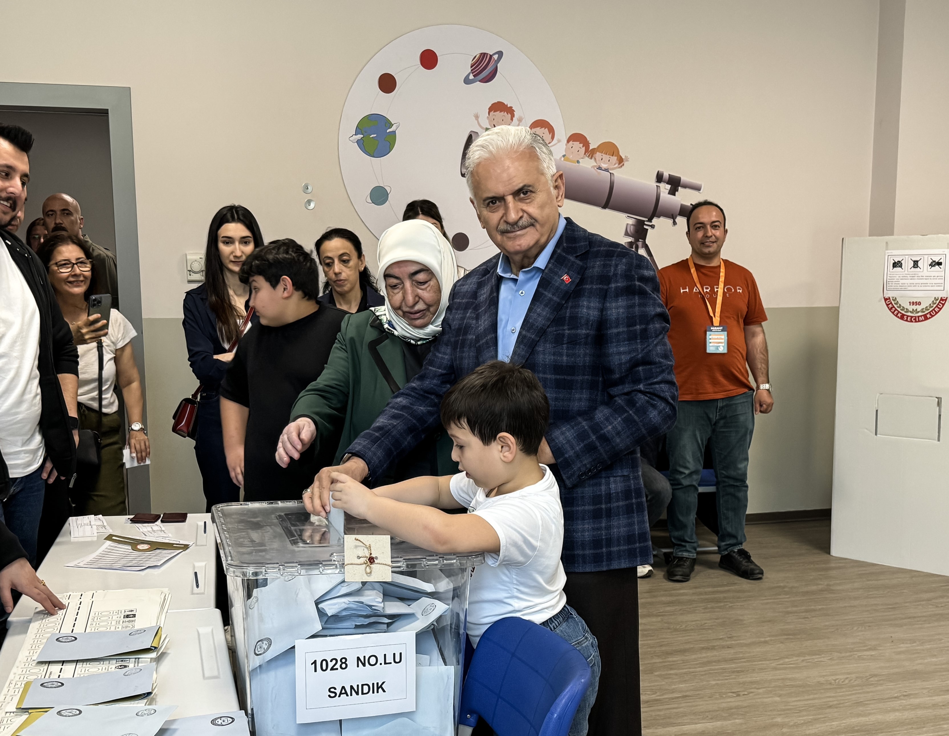 Eşi Semiha Yıldırım ile Tuzla'da kendi adını taşıyan ilkokula gelen Yıldırım, oy kullanacağı "1028" numaralı sandıkta görevli başkan ve müşahitlerle selamlaştı.