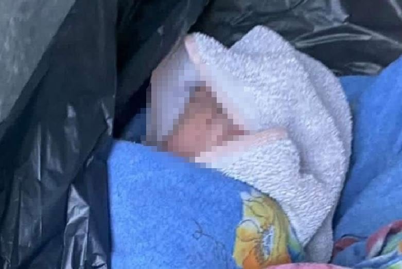 Binanın girişinde gördüğü poşetin içini kontrol eden Tanış, örtüye sarılı vaziyette bir bebek buldu.