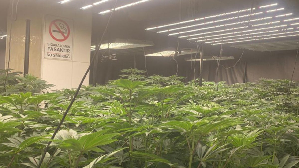 Binaya, uyuşturucu üretimi için damlama sulama sistemi ile enerji panellerinin yerleştirildiği görüldü.