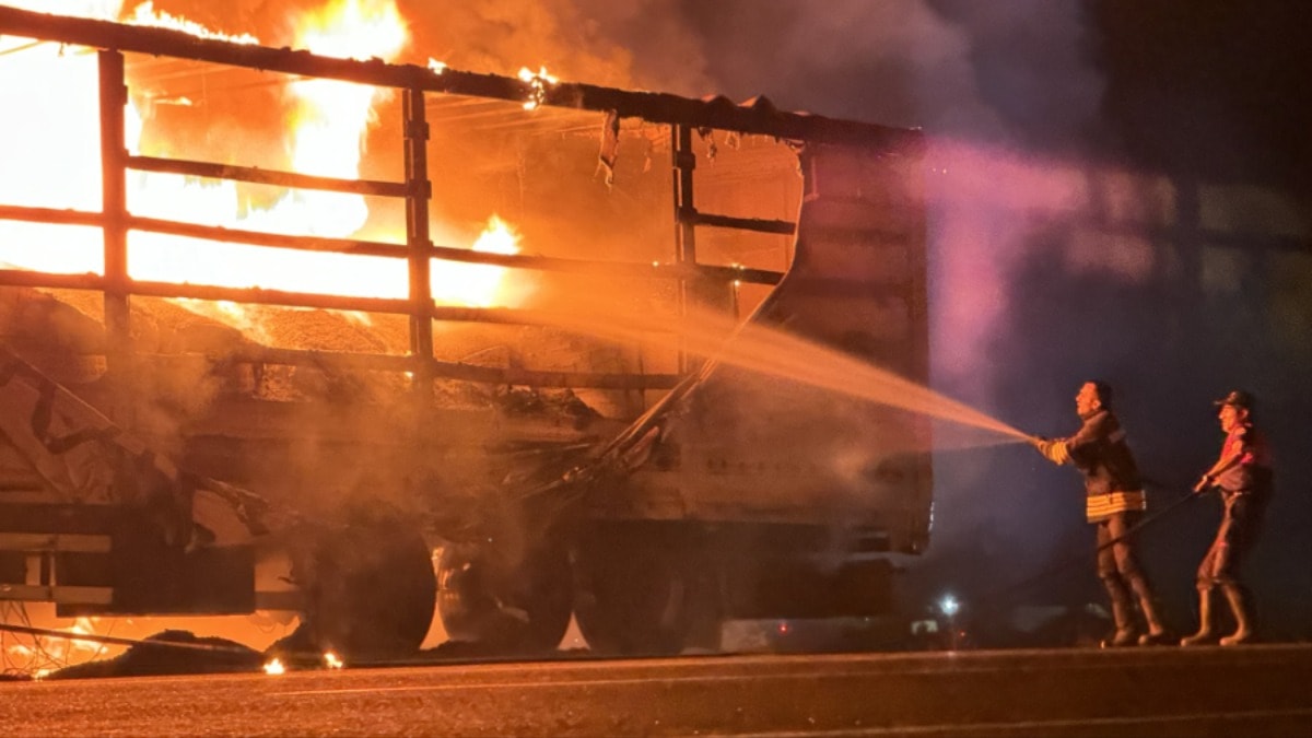 Yangını fark eden sürücü, TIR'ı yolun kenarına çekerek durumu itfaiyeye bildirdi.