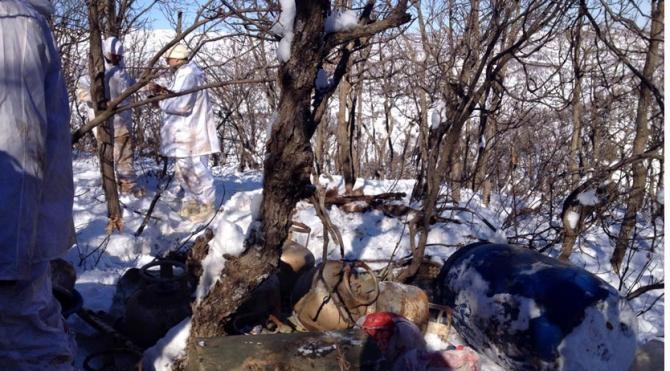 Bingöl'ün Genç ilçesinde PKK`lıların kullandığı bir sığınakta yaşam malzemeleri ele geçirildi.