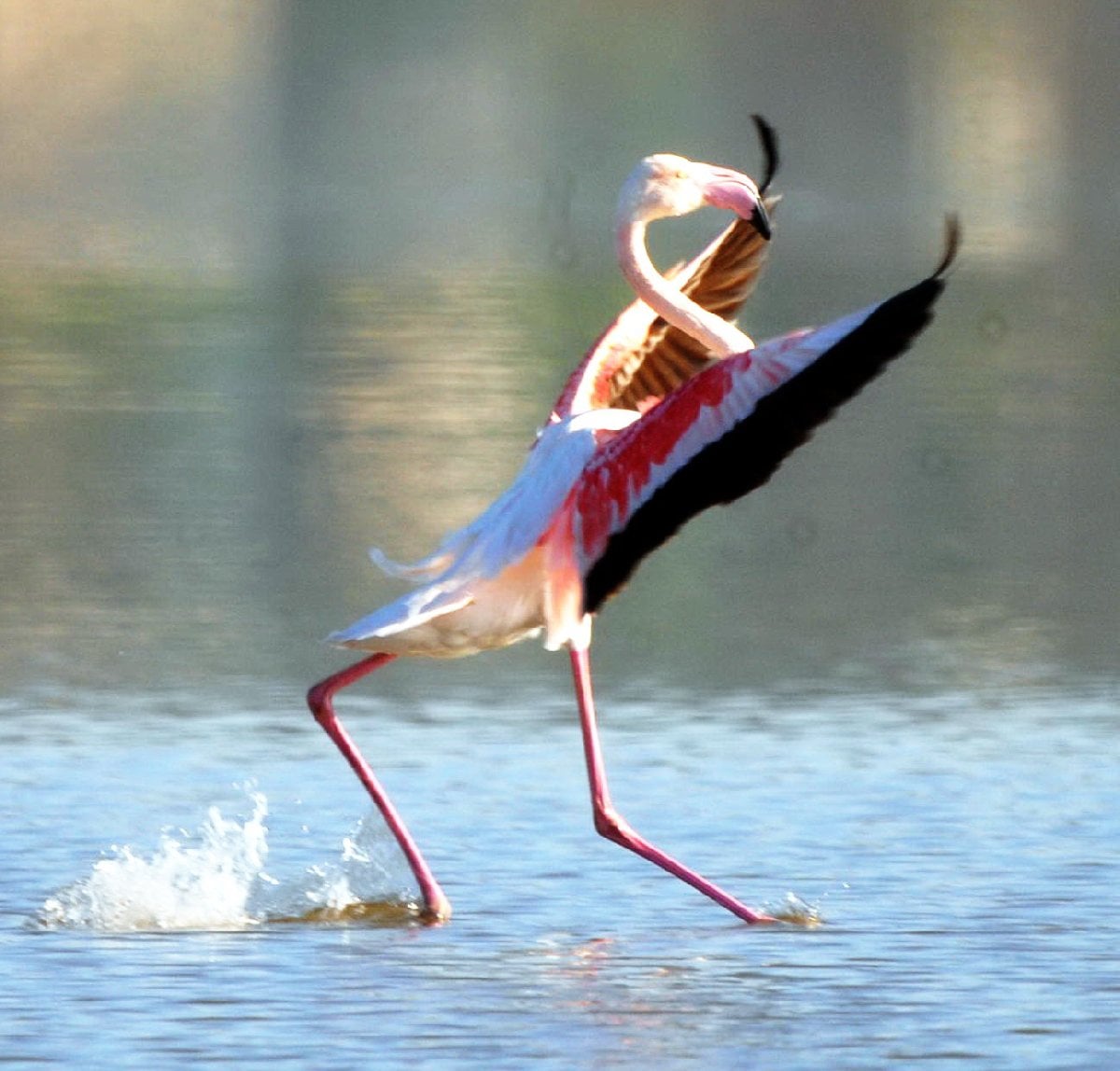 Tuzla Sulak Alanı'na iç bölgelerde meydana gelen aşırı soğuklar nedeniyle akın akın giden allı turnalar görsel şölen sundu.