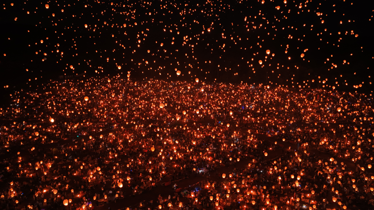 ABD'de düzenlenen festivalde renkli görüntüler ortaya çıktı. Binlerce kişi dilekler dileyip fenerler hazırladı ve gökyüzüne bıraktı. O anlar kameraya yansıdı.