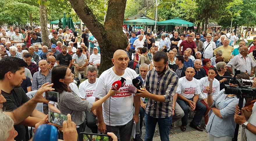Özkoç şöyle konuştu; “Tank Palet 1105 sayılı cumhurbaşkanlığı kararı ile ASFAT’a devrediliyor. Bu devir aslında askeri fabrikayı Katar’a devretmek için hülle yoluna başvurmaktır. Türkiye’de satacak bir şey kalmadığı için sıra askeri fabrikalara geldi. Tank Palet vatandır, satılamaz. Türkiye’nin uyanık kalması lazım. Sadece tank palet değil, yer altı kaynaklarımız da Kaz Dağları’nda olduğu gibi Kanada ve benzeri firmalara peşkeş çekiliyor. Bu satışlar karşısında vatandaşın görev başında olması, vatana sahip çıkması lazım. Biz bütün geceyi Sakarya meydanında geçireceğiz. Sakarya tank palet vatandır, satılamaz. Bunu bir kez daha yüksek sesle vurgulayacağız.”