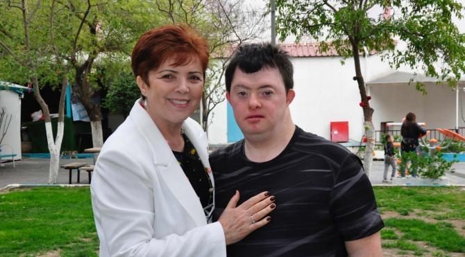 "Eşimin ölümü benim için yıkım oldu. Daha 28 yaşında 2 çocuğumla tek başıma kaldım. Yaşadığım acıyı bir kenara bırakıp çocuklarıma sarıldım. Birkaç gün sonra Serdal'ın nefes alışında bir farklılık hissettik. Tepecik Devlet Hastanesi'nde doğum yaptığımda kimse bir şey söylememişti. Kontrollerde kimse bir şey söylememişti. Özel doktora götürdüğümde bana direk, 'Çocuğunuzun durumundan haberiniz var mı' dedi. Ben ne olduğunu sorduğumda, down sendromlu olduğunu söyledi. Ben ne anlama geldiğini bilmiyordum. Bir taraftan eşimi kaybettim, 10 gün sonra oğlumun durumunu öğrendim. Bunalıma girdim. Kimseyle konuşmak istemiyordum. Neden ben Bu sorunun cevabı yoktu, içimdeki fırtına devam ediyordu, onunla başa çıkamaz hale gelmiştim ve kendimi çaresiz yalnız ve çok güçsüz panik içinde hissediyordum. 'Babaları yok, iki çocuğum da bana muhtaç' diye düşünerek kendimi toparlamaya başladım. 'Ben çocuklarımın başında olmalıyım' dedim. Şükür atlattım. Serdal'ı kontrolleri için hastaneye götürdüm. Bu sefer de kalbinin delik olduğunu öğrendik. Dünyam bir daha yıkıldı. Bir ay hastanede kaldık. 5 yaşına kadar mücadele ettik. Bir müdahale geçirdi ancak başarılı olunamadı. Şuan kalbinde 4 buçuk santimetrelik delik var. Bir yandan çalışmam lazım diğer yandan çocuklarımı bakacak kimse yok. Serdal'ı öğretilebilir çocuklar okuluna gönderdim, özel eğitim merkezine gitti. O zaman imkanlar çok kısıtlıydı. Down sendromlu çocukları anaokulları kabul etmiyordu. Ancak şimdi her anaokulu 2 down sendromlu çocuk almak zorunda. Tanıdıklar vasıtası ile bir anaokulunda yarım gün eğitim aldı. Ama Serdal'ı anaokulundan almaya her gittiğimde ağlayarak dönüyordum. Aileler hep şikayet ediyordu."