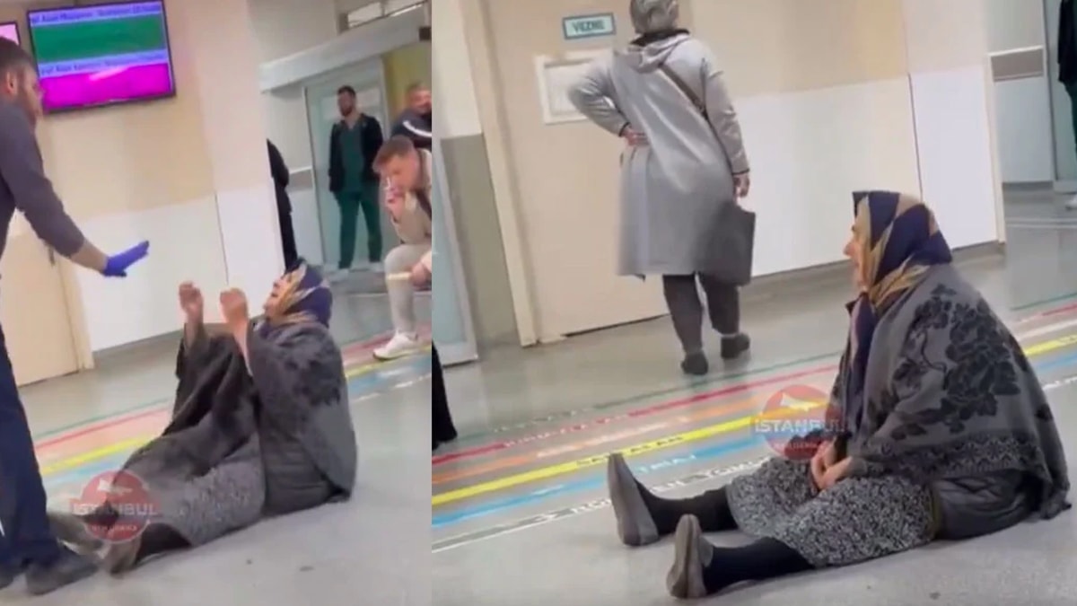 Yaşlı kadın, feryat ederek kendini hastane koridorunun zeminine bıraktı. O anlar çevredeki vatandaşlar tarafından kaydedildi.