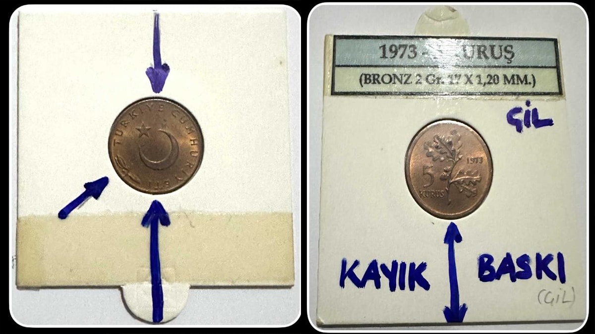 Bir zamanlar herkesin cebinde bulunan bakır 5 kuruş paralar bu günlerde nadir ve oldukça değerli koleksiyon parçalarına dönüşmüş durumda. 1973 yılına ait 5 kuruş paraları arasında dikkat çekerken, kayık baskı ve erör hatası bulunuyor. Bu hatalar sadece koleksiyoncular için değil aynı zamanda yatırımcılar için de önemli bir değer taşıyor. 1973 yılına ait 5 kuruş kayık baskı ve erör hatası nedeniyle çevrimiçi internet sitesinde 1450 TL'den alıcı buluyor.