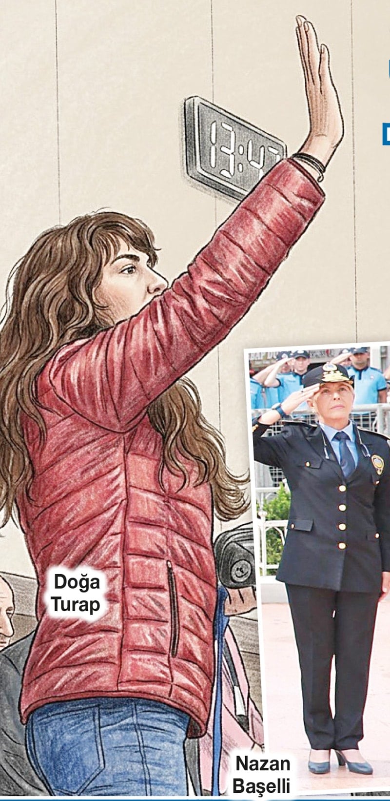 Zabıta Müdürü Nazan Başelli’nin kızı Doğa Turap, annesinin kendisini kalabalık salon içerisinde rahatça seçebilmesi için Silivri’deki duruşma salonuna kırmızı kıyafetle geldi. Turap annesine “Anne seninle gurur duyuyoruz, seni çok seviyorum” diye seslendi.