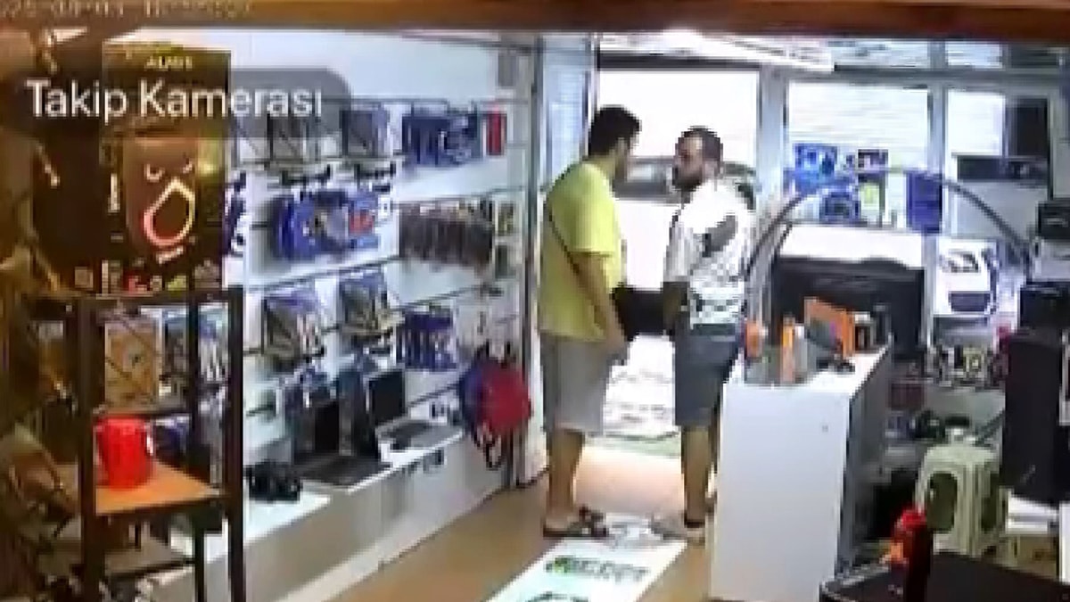 Fettahoğlu’nun dükkandan çıkmasını fırsat bilen ve akli dengesinin yerinde olmadığı belirtilen başka bir müşteri, kasada bulunan cep telefonunu ve rafta yer alan bir oyun CD’sini çalarak dükkandan ayrıldı.