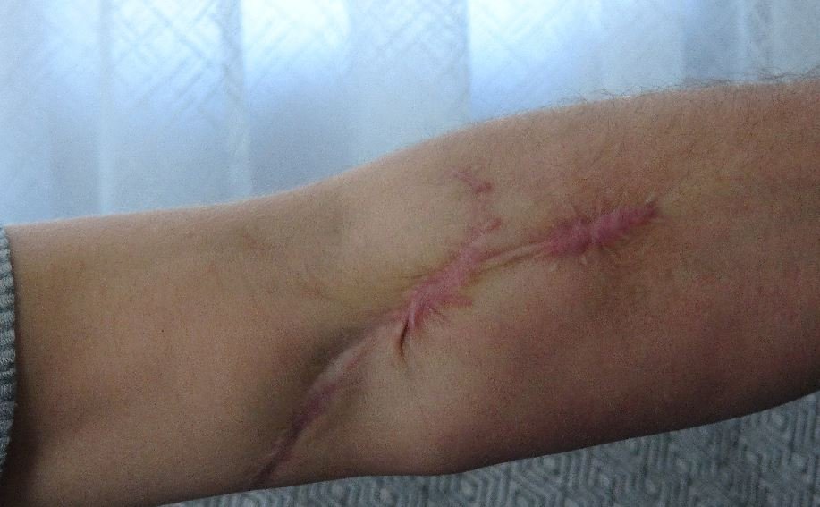 Olayı hala unutamadığını söyleyen Tokgöz, "Sanığın ifadesine göre, kendisinin elinde ekmek bıçağı varmış, elinde duruyormuş ve ben böyle yaralanmışım. Sanık 2 metrelik bir kılıçla bana saldırdı. Aldığım kılıç yarası sebebiyle elimi ve parmaklarımı hissetmiyorum. Bu sanık hem bana hem ağabeyime saldırdı.