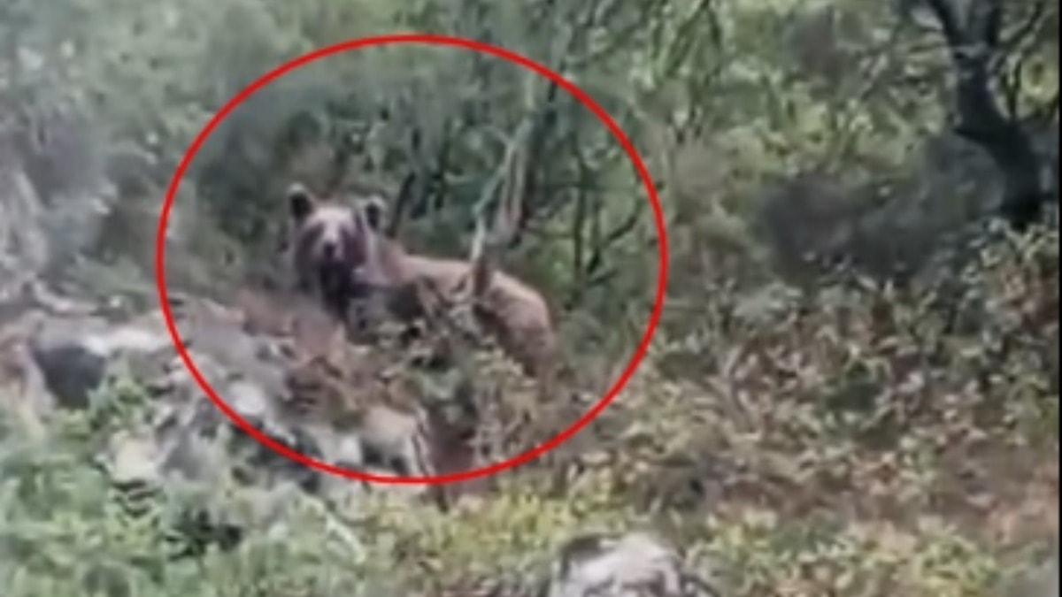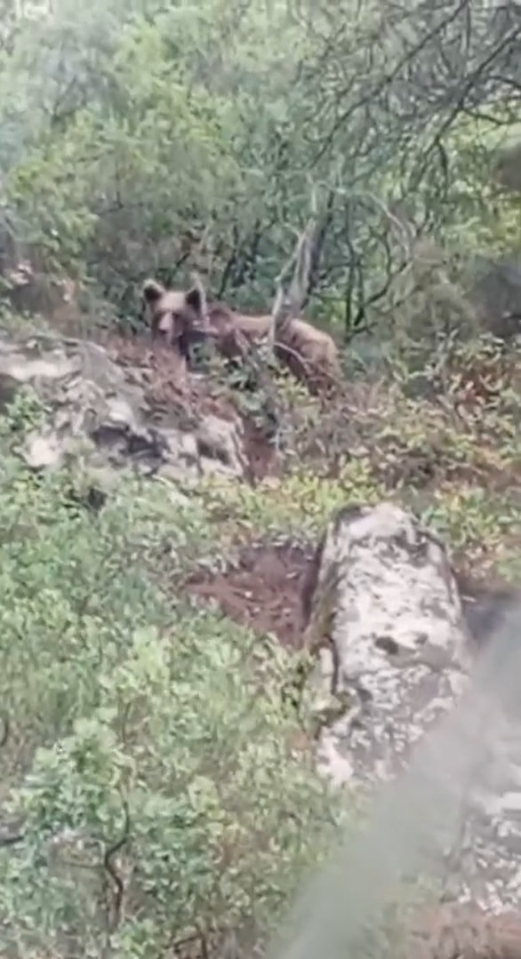 Bursa’nın Orhaneli ilçesi Letafet Mahallesi’nde kepçe operatörü Muzaffer Çetinkaya, ağaçların arasında bir ayı fark etti. O anları cep telefonu kamerasıyla kayda alan Çetinkaya, klakson çalınca ayı ormanın derinliklerine doğru kaçtı.