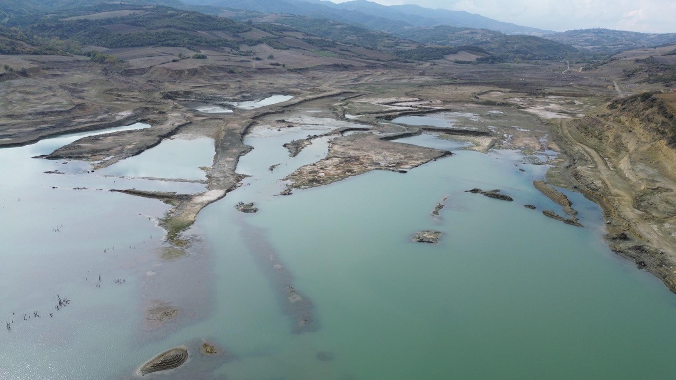 Tekirdağ'ın merkez ilçesi Süleymanpaşa'nın su ihtiyacını karşılayan Naip Barajı'nda su seviyesi, yüzde 1'in altına düştü. Kuruma noktasına gelen barajın son hali, dron kamerası ile görüntülendi.