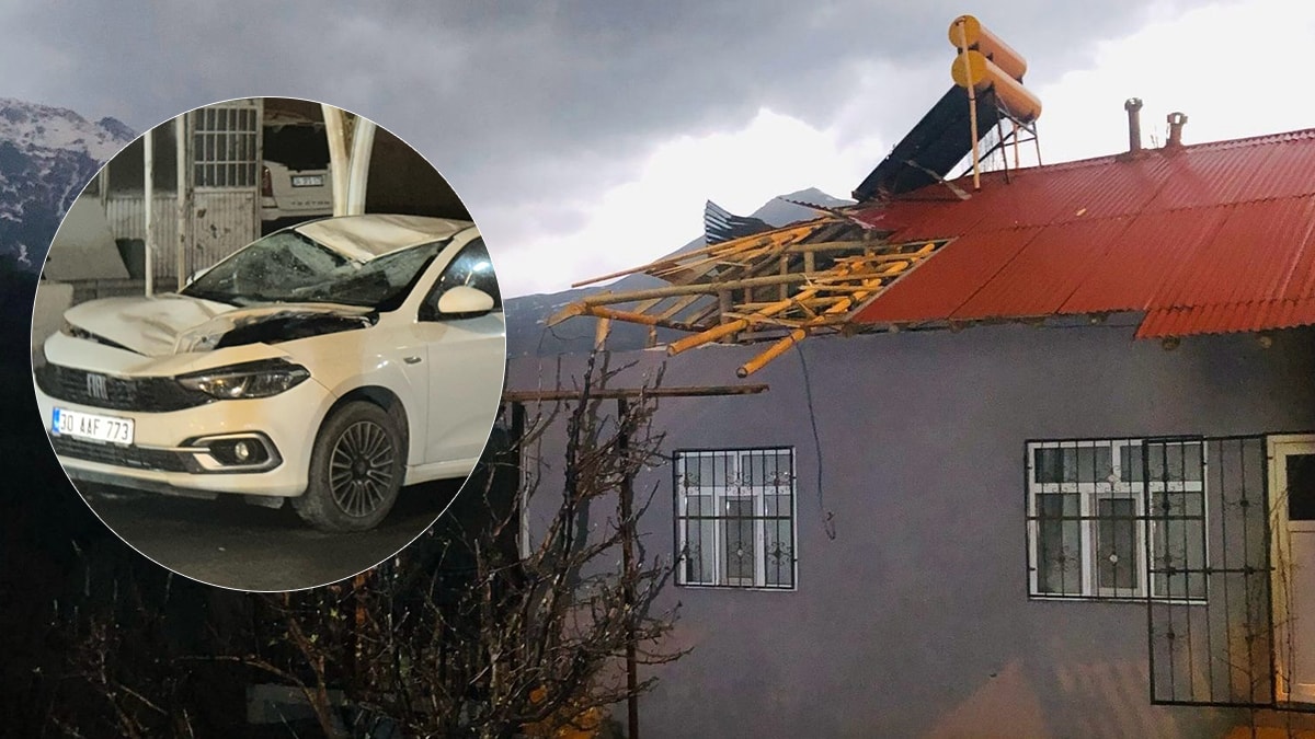 Hakkari'de dün akşam saatlerinden itibaren kentte etkili olan yoğun rüzgar, bazı binaların çatılarının uçmasına, ağaçların devrilmesine ve araçlarda maddi hasara yol açtı.