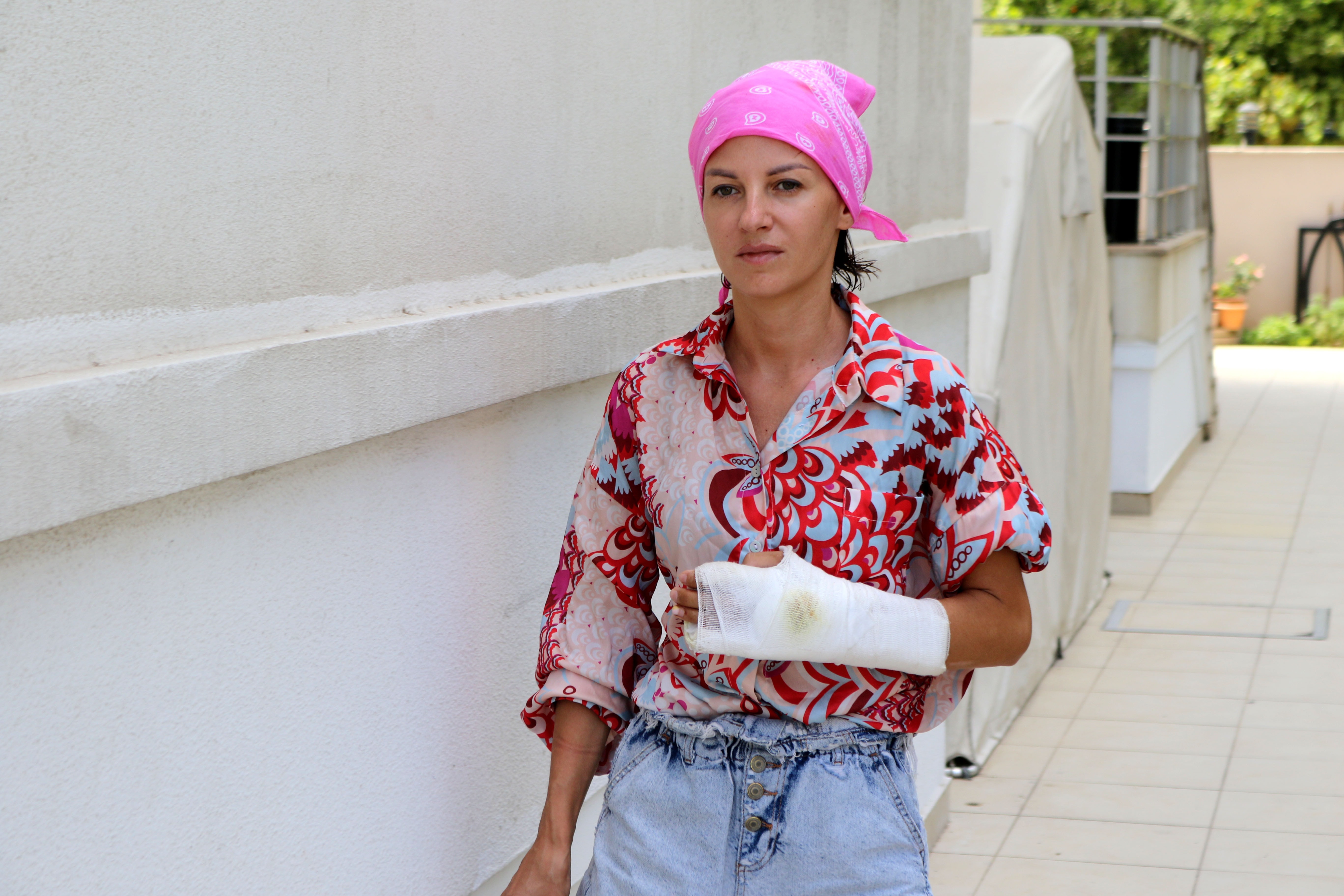Komşuların durumu sağlık ekibine haber verdiğini belirten Iryna Melnychuk D., "O halde ben KADES'e bastım, komşularım da ambulansı çağırdı. Ambulans beni Antalya Eğitim ve Araştırma Hastanesine kaldırdı. 21 Temmuz'a kadar hastanede kalıp tedavi gördüm. Ameliyat yapıldı, dikişler ve zımbalar var. Pazartesi kafamdaki yaralardan dolayı ameliyat olacağım. Kapanması zor yaralar var" diye konuştu.