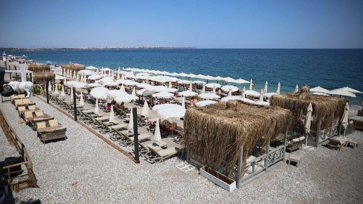 Her yıl milyonlarca ziyaretçiyi ağırlayan Antalya'da, turistlerin en çok bildiği sahil olan Konyaaltı Sahili; loca, şezlong, şemsiye kiralanan işletmeler ile giriş ücreti ödenmeyen plajlarıyla turizm sezonunun en yoğun günlerini yaşıyor.