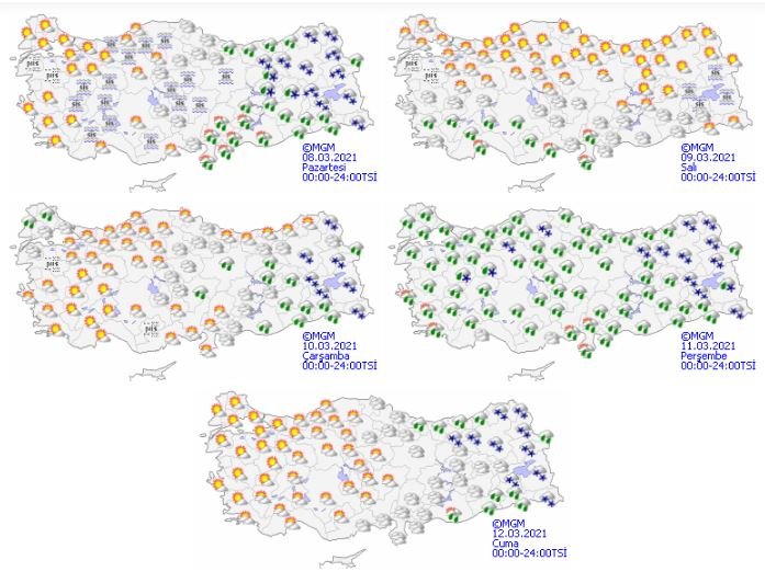 Yağışların Doğu Karadeniz kıyıları, Güneydoğu Anadolu'nun doğusu ile Hatay, Osmaniye, Malatya, Elazığ ve Adıyaman çevrelerinde yağmur ve sağanak, yağış alan diğer yerlerde karla karışık yağmur ve kar şeklinde olması bekleniyor.