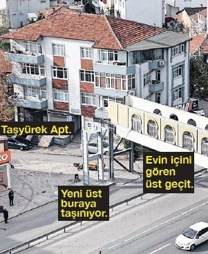 Üst geçidin Barbaros Mahallesi tarafındaki ayağının indiği noktada bulunan Taşyürek Apartmanı sakinleri hiç beklemedikleri bir sorunla karşılaştı. Üst geçidi kullananlar evin içini rahatlıkla görebiliyordu. Çeşitli girişimlerde bulunan ancak sonuç alamayan Taşyürek ailesi, 2014 yılında üstgeçidin yıkılması için mahkemeye başvurdu.