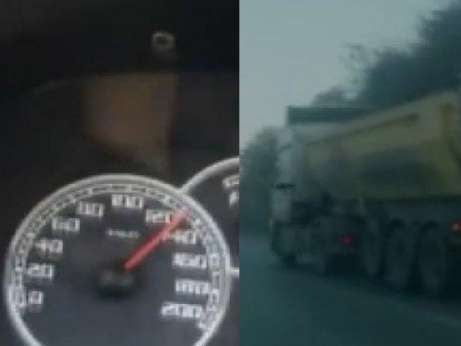 İstanbul'da Arnavutköy’-Sultangazi arasında bağlantı yolunda seyir halinde olan sarı damperli hafriyat kamyonu 130 kilometre hızla giderken görüntülendi. Hız sınırı 70 olmasına rağmen 130 kilometrenin üzerine çıkan sorumsuz sürücünün sık sık şerit değiştirerek trafik güvenliğini de tehlikeye attığı da gözlendi. Aynı yönde seyir halinde olan ve kamyonu takibe alan bir vatandaşın o anları cep telefonu kamerası ile kaydedildi.