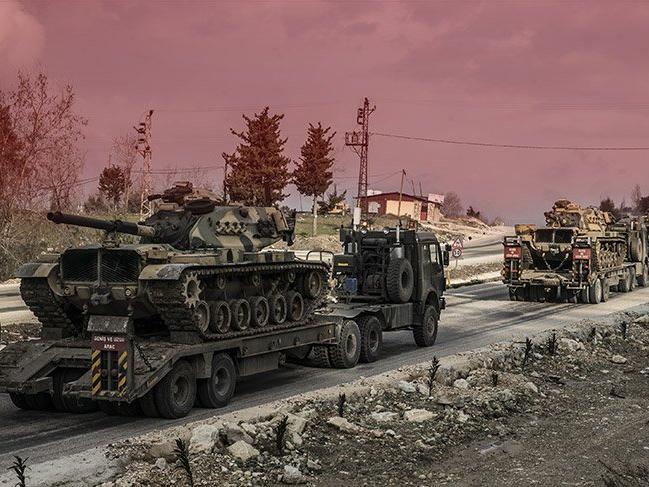 Tırlardan indirilen askeri araçlar, İdlib sınırındaki birliklere doğru hareket etti.