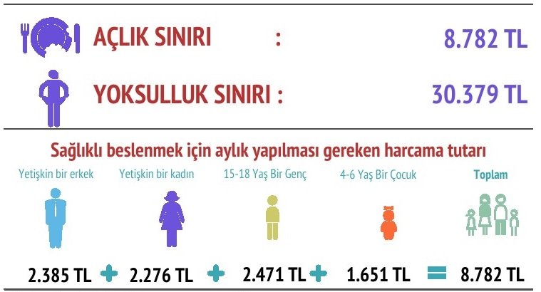 BİSAM verilerine göre, bir ailenin kira, fatura, ulaşım, eğitim, sağlık, giyim gibi aylık tüm harcamalarını kapsayan yoksulluk sınırı ise ocak ayında 30 bin 379 TL'ye yükseldi.