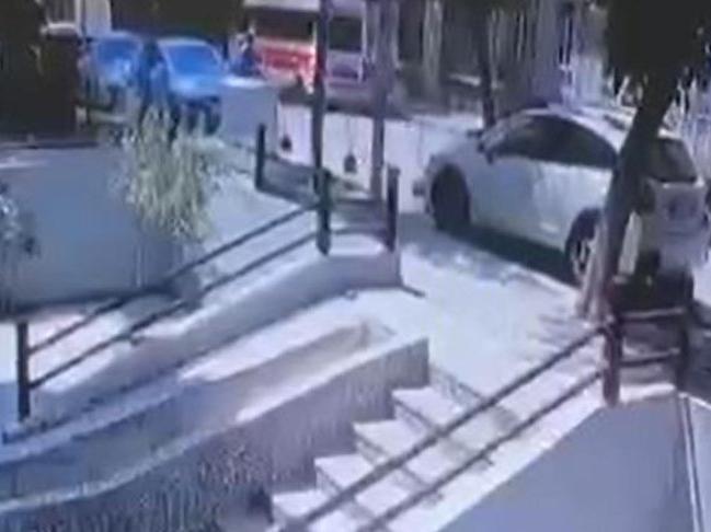 Kaza anı ise çevredeki bir iş yerinin güvenlik kamerası tarafından kaydedildi.