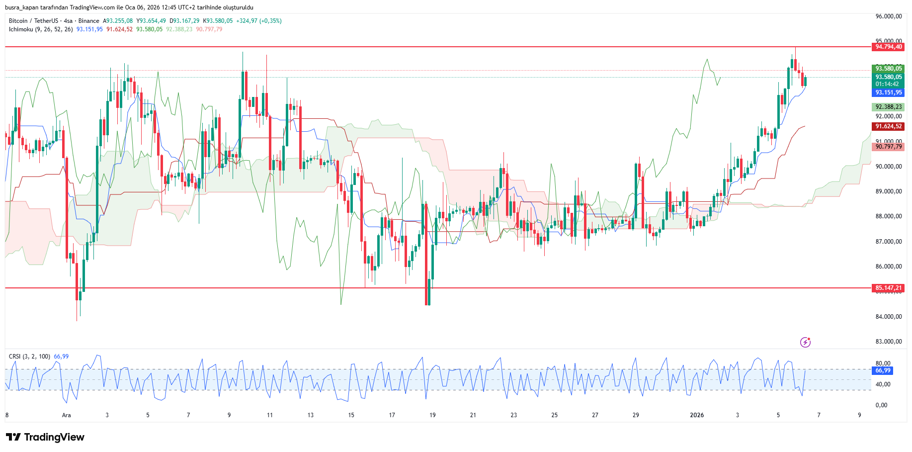 Lider kripto para birimi Bitcoin, dün 94 bin 794 dolar seviyesine yükselerek, 7 haftanın zirvesini gördü. Bugün ise öğlen seansında 13.44'te 93 bin 580 dolarda bulunuyor.