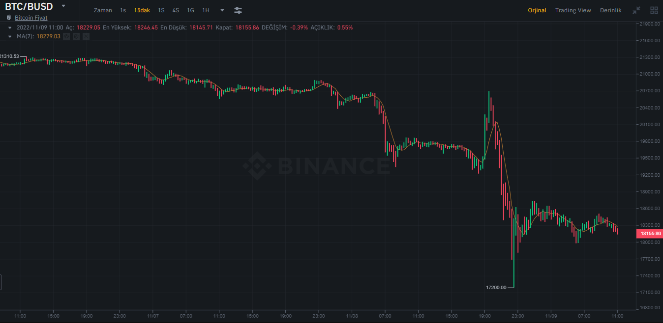 Bu derin düşüşün sebebi tek başına Binance’in satışları olmasa da Binance’in yarattığı paniğin katkısı olduğu açık. Öyle ki tabiri caizse bu iki devin kavgasında en çok zarar gören daha önce olduğu gibi yine küçük yatırımcılar oldu.