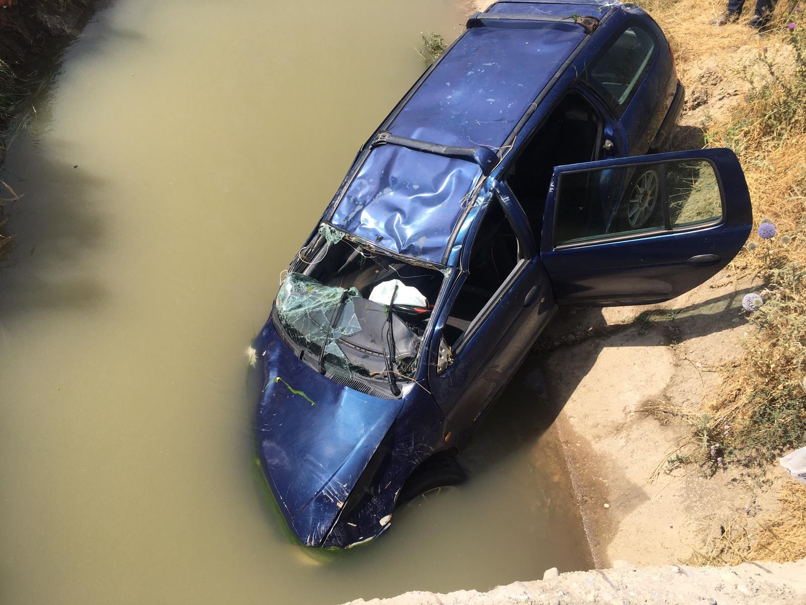 Bitlis'in Ahlat ilçesinde, B.Ç. yönetimindeki otomobil, sürücüsünün kontrolünden çıkarak yol kenarındaki su kanalına devrildi.