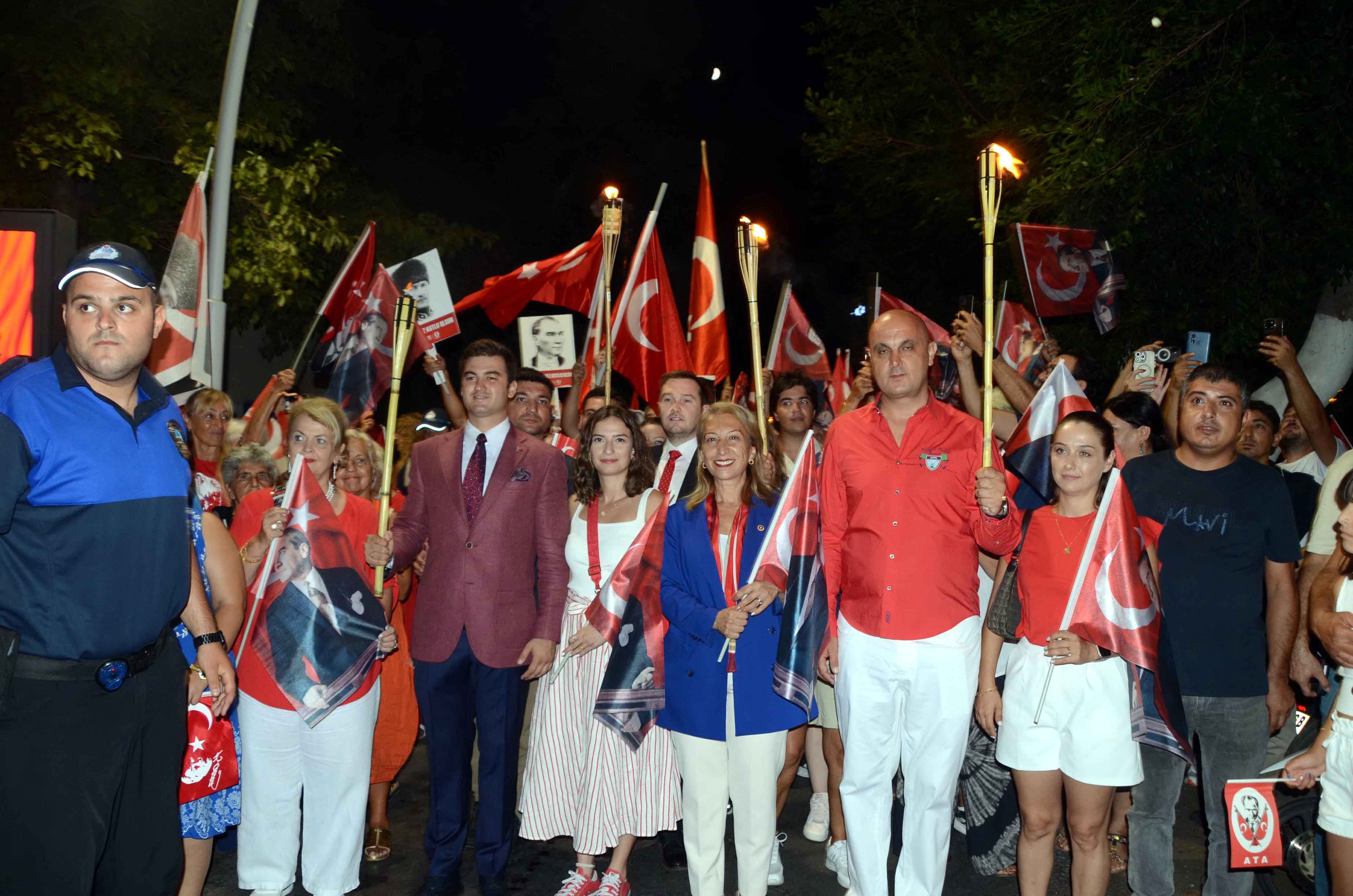 Bugün akşam Neyzen Tevfik Caddesi’nde başlayan ve bir kilometre uzaklıktaki Belediye Meydanı’na kadar devam eden fener alayına binlerce vatandaş katıldı. Coşkulu bir atmosferde gerçekleşen fener alayında vatandaşlar ellerinde Türk bayrakları ve meşalelerle Belediye Meydanı’na yürüdü.
