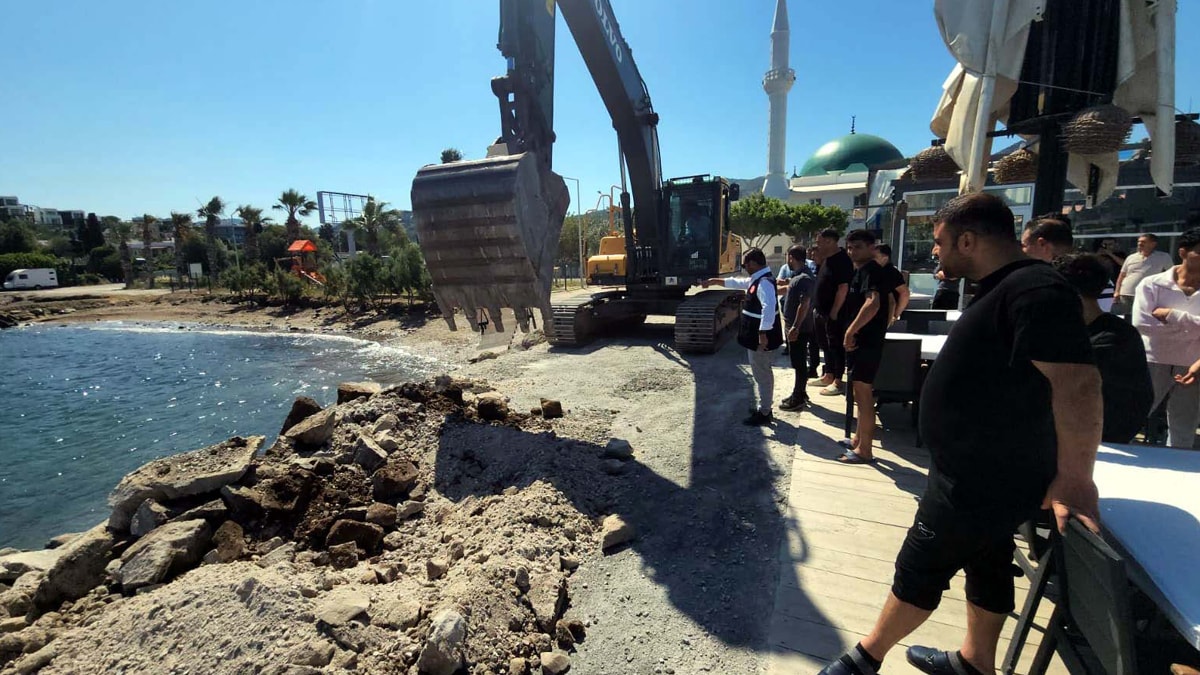 Ünlü bir restoranın önündeki kaçak iskelenin iş makineleri ile yıkılmak istenmesi üzerine memurlar ile işletme sahipleri ve personel arasında gergin anlar yaşandı. Bazı personelin iş makinesinin önüne geçmesiyle gerginlik arttı.