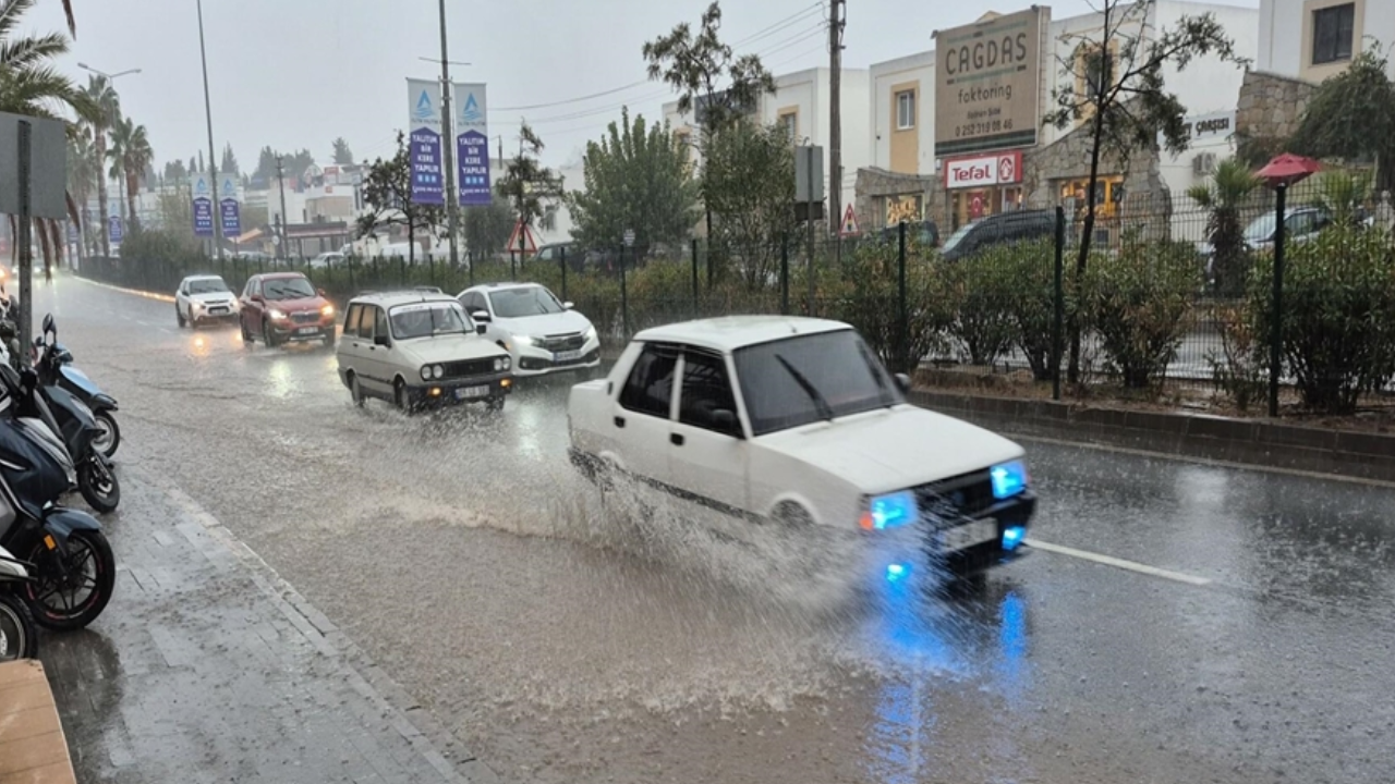 Meteoroloji tarafından şiddetli sağanak uyarısı yapılan Bodrum’da dün aralıklarla başlayan yağış, bugün etkisini arttırdı. Yağmur nedeniyle yollarda su birikintileri oluştu.