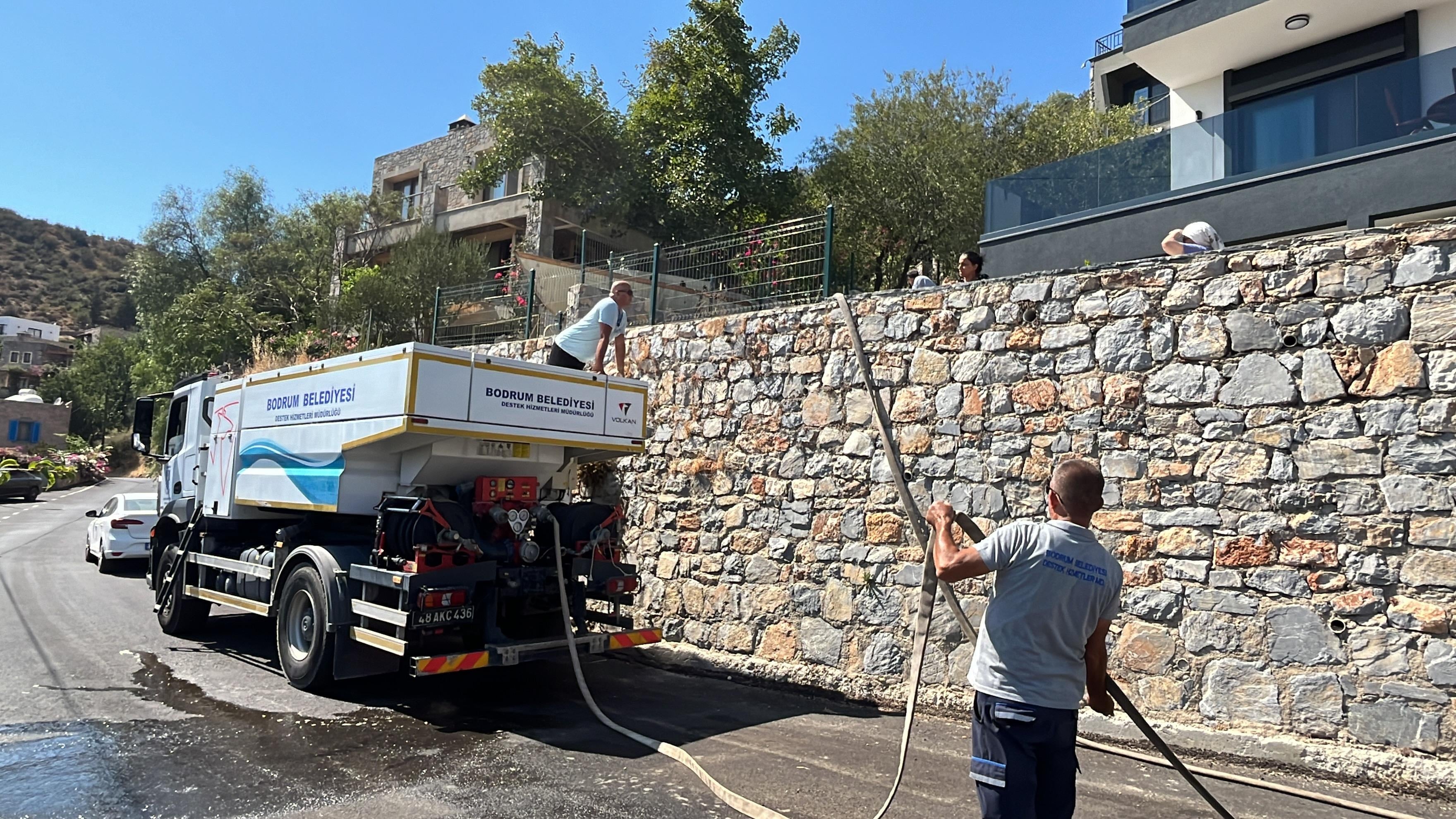 Muğla'nın Bodrum ilçesinde su kesintisi yaşanan evlere tankerlerle su veriliyor.