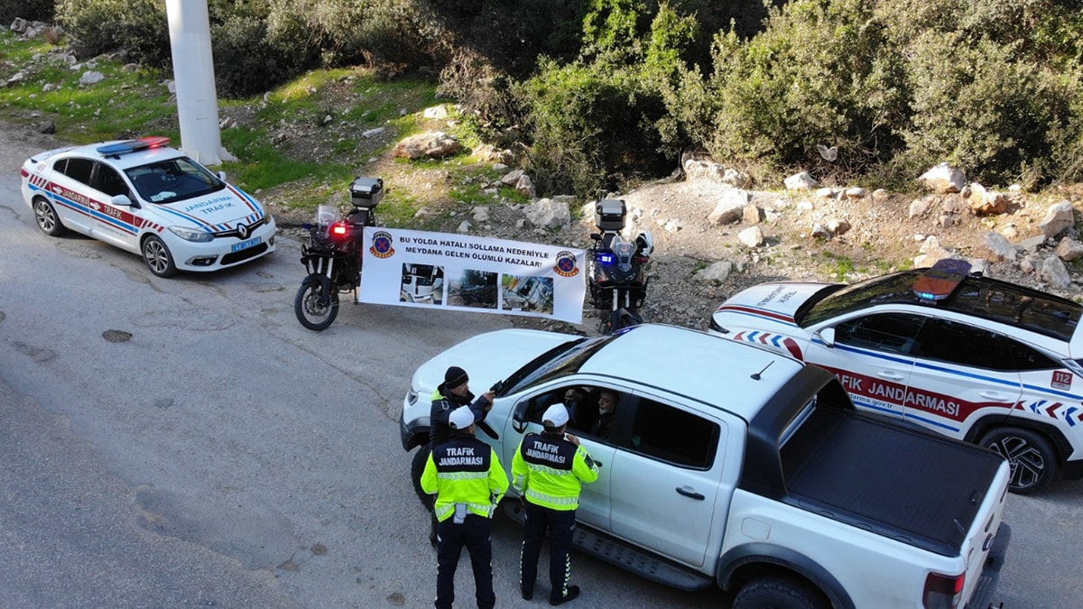 Muğla’nın Bodrum ilçesinde ölüm yolu haline gelen ve bir yılda üç kişinin yaşamını yitirdiği turistik Torba Mahallesi- Gölköy karayolunun Demirbükü Mevkii’nde Bodrum İlçe Jandarma Komutanlığı Trafik Kısım Komutanlığı tarafından hazırlanan proje kapsamında sürücülere yönelik “Hatalı geçme, Ölümü seçme” mottosuyla farkındalık etkinliği düzenlendi.