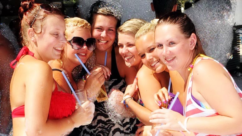 Düzenlenen müzikli köpük partilerinde çılgınca dans eden turistler eğlencenin zirvesine ulaştı.