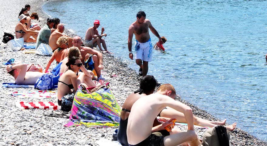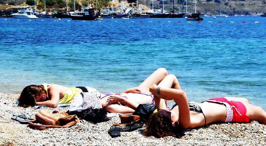 Birçok turist ise Bitez, Gümüşlük ve Kumbahçe plajında bol bol güneşlendi denize girdi. Bikinisi olmayan turistler tişört, kazak ve pantolonlarını çıkartarak çamaşırları ile güneşlenirken, birçok turist de denize girerek sıcak havanın tadını çıkardı. Okuldan çıkan bazı ortaokul öğrencileri de iskeleden atlayarak deniz sezonunu açtı.