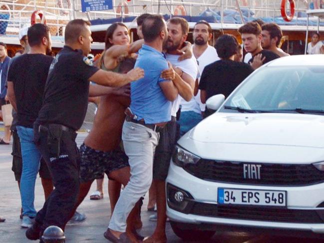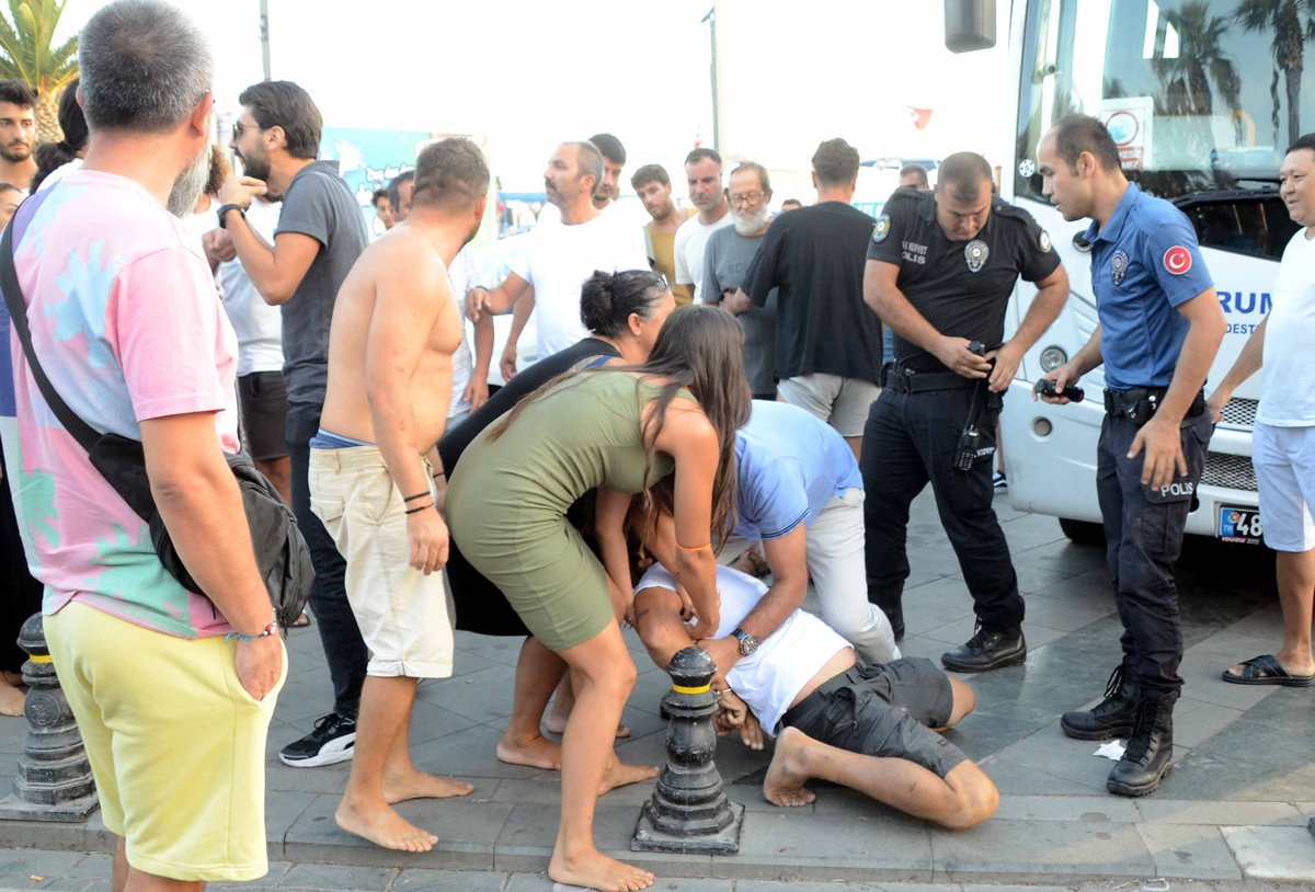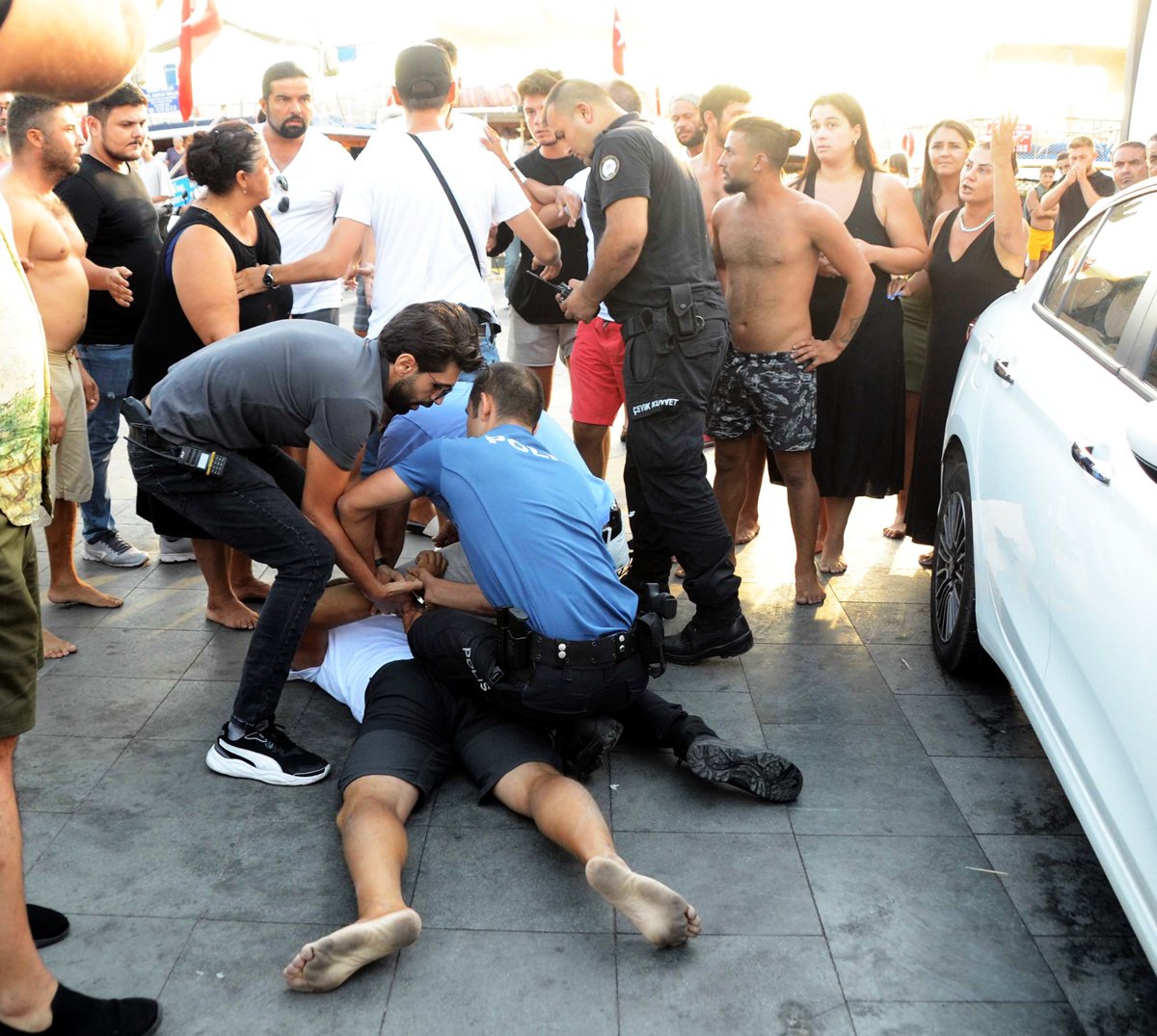Bazı tekne çalışanlarının polise tekme atıp bir polisi yere düşürmesi ile olay büyüdü. Polise mukavemet eden M.L. gözaltına alınmak istenince diğer tekne çalışanları ile polis arasında arbade yaşandı. Yaşanan arbede ve kavgayı yüzlerce yerli ve yabancı turist korku dolu gözlerle izledi.