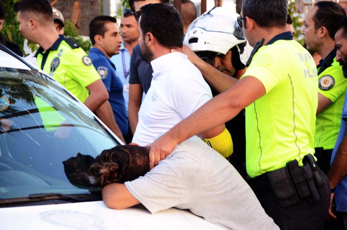 Gözaltına alınan ve polis aracına güçlükle bindirilen polis memurlarına küfür ve hakaret ederek tekme atması nedeniyle kelepçelenen tekne çalışanı M.L. konulduğu polis aracının içerisinde tekme atarak aracın camlarını kırınca olaylar büyüdü. Olay yerine çok sayıda polis ekibi sevk edildi.