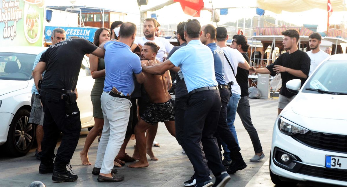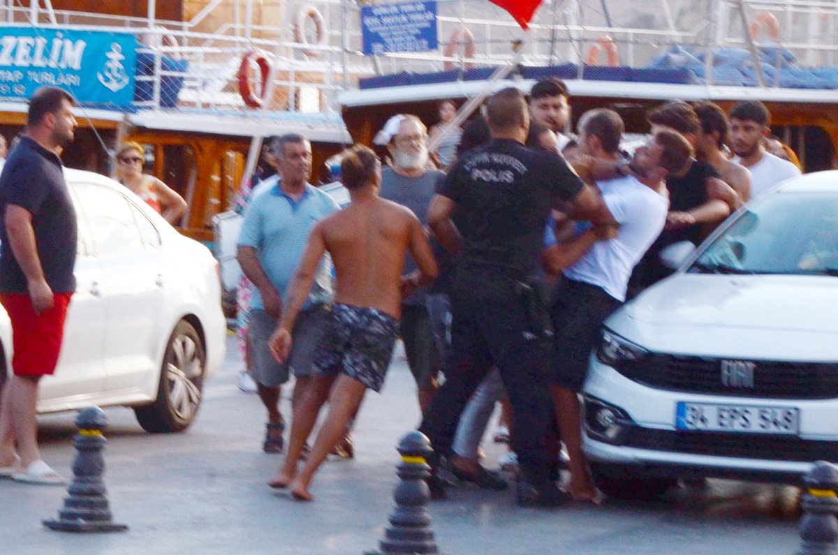 Araya diğer tekne çalışanlarının girmesi ile yaklaşık 260 TL ekstra ücreti ödemek istemeyen turistlerle sözlü tartışma kısa sürede tekme tokatlı kavgaya tutuştu. Kavganın büyümesi üzerine meydanda görev yapan trafik ve asayiş polisleri kavgaya müdahale edip tarafları ayırmak istedi.