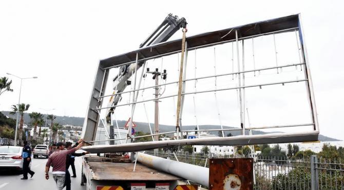 Kıbrıs Şehitler Caddesi'nde ise özel bir şirkete ait dev reklam tabelası, yayaların üzerine düştü. Ayağı kırılan makine mühendisi 47 yaşındaki Hayri Bertan, Bodrum Devlet Hastanesi'nde tedaviye alındı. Ayrıca Mumcular ve Yalıkavak'ta 3 kişi devrilen ağaçlar yüzünden yaralandı.