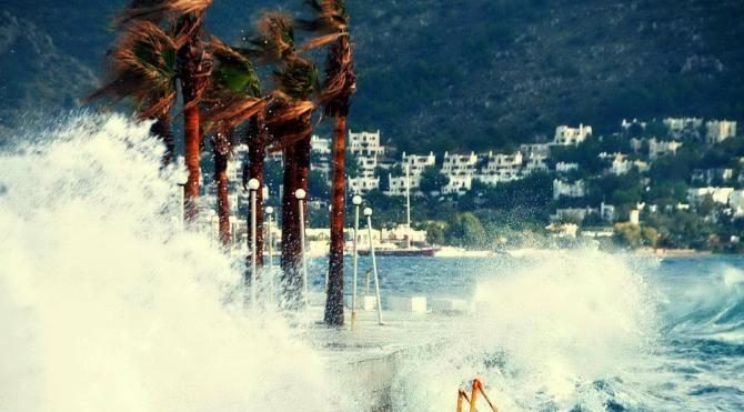 Bodrum'da bu sabah başlayarak saatteki hızı 80 kilometreyi aşan fırtına, kentte hayatı zorlaştırdı. Fırtına nedeniyle Bodrum Belediyesi ve Liman Müdürlüğü'nden balıkçı ve denizcilere sıklıkla uyarılar yapılarak, liman dışına çıkılmaması istendi. Açık denizde dalga yüksekliği 4 metreyi geçti. Güllük'ten İsrail'e kuru yük götüren gemiler ise Bodrum'un Bitez, Ortakent-Yahşi ve Gümbet koylarına sığınmak zorunda kaldı. Yalıkavak ve Turgutreis mahallelerinde liman dışında olan balıkçı tekneleri ve sailing yatlar, dalgalarla kıyıya sürüklendi. Liman dışında demirleyen balıkçı tekneleri ise fırtına nedeniyle bulundukları yerden ayrılarak batmamak için korunaklı koylar ve barınaklara gitmek zorunda kaldı.