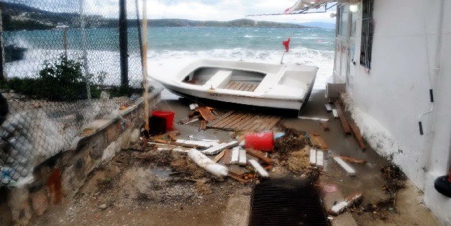 Sahildeki ev ve işyerleri sular altında kalırken bazı ahşap iskeleler parçalandı. Küçük balıkçı kayıkları ise demir tarayarak karaya oturdu. Sahildeki bazı asırlık ağaçlar fırtınaya dayanamayarak devrildi.