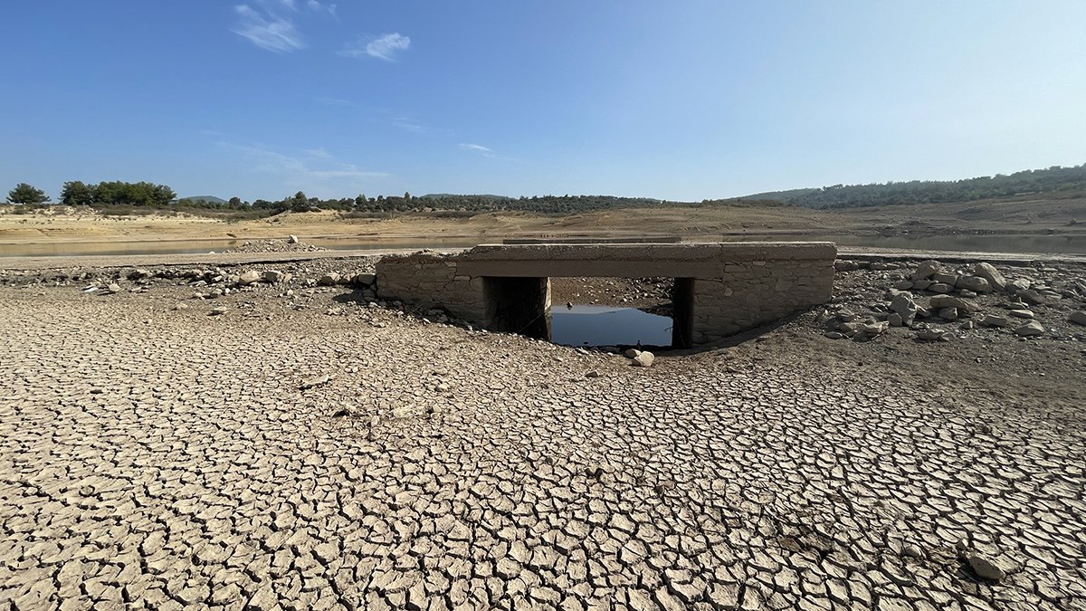 Öte yandan suyun dip seviyeye düştüğü baraj dronla görüntülendi. Görüntülerde, bölgedeki tarihi alanların tamamen gün yüzüne çıktığı, seviyenin su alma sınırının altına düştüğü yer alıyor.