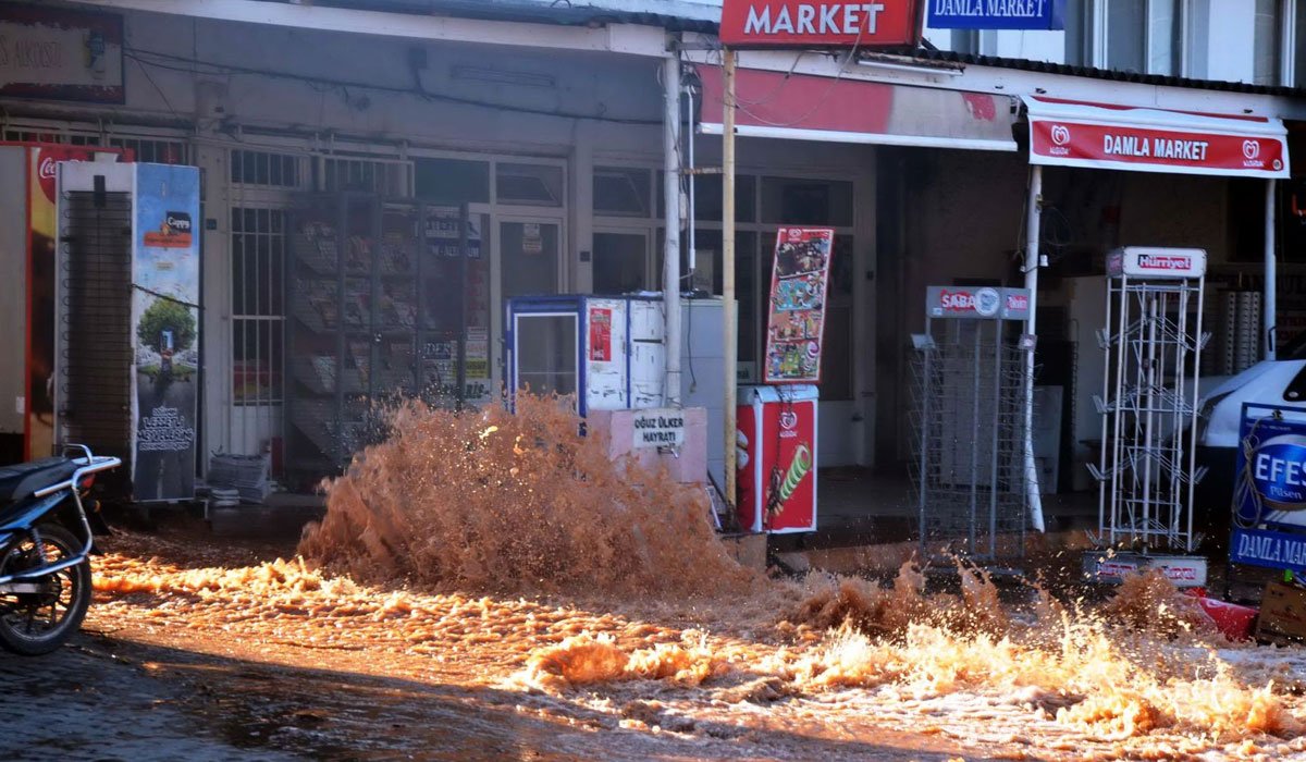 Atatürk Bulvarı nehire döndü. Yaz ortasında tonlarca suyun aktığını gören yerli ve yabancı turistler şok oldu. 4 arabanın sürüklenerek zarar gördüğü olayda, 6 ev ve 9 işyerini suların bastığı olayda MUSKİ’nin suyu kesmesi üzerine cadde çamurlarla kaplandı. Ekipler caddenin ortasında 3 metre genişliğinde 2 metre derinliğinde açılan çukur ve isale hattında bakım ve onarım çalışmalarına başladı.